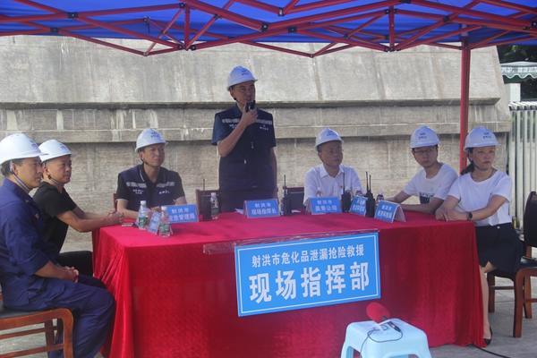 為全面提升應對危化品事故處置水平和應急救援能力,根據(jù)遂寧市委、市政府決定,開展遂寧市2020年防汛減災搶險救援應急演練。我公司作為此次演練中的重要一環(huán),7月4日上午,在工業(yè)園區(qū)開展射洪市2020年危化品泄露搶險救援應急演練。公司領導任國建、宋根、謝安及公司應急搶險隊、遂寧化工應急救援隊、射洪市消防救援大隊等參加演練,射洪市應急管理局局長李青現(xiàn)場指揮,遂寧市副市長羅孝廉、雷云坐鎮(zhèn)市指揮部指揮。
